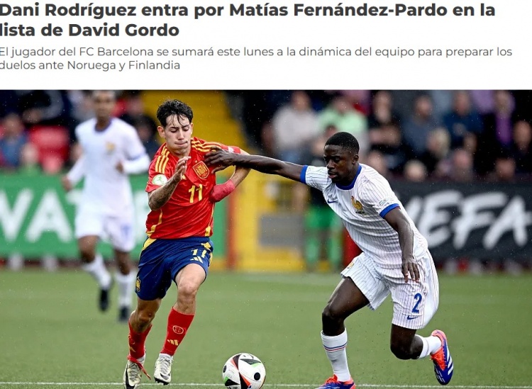 Liên đoàn bóng đá Tây Ban Nha chính thức thông báo rằng cầu thủ trẻ Dani Rodriguez của Barcelona đã được U21 Tây Ban Nha triệu tập. Mặt khác, Matias Fernandez Pardo (Lille) vắng mặt vì chấn thương.